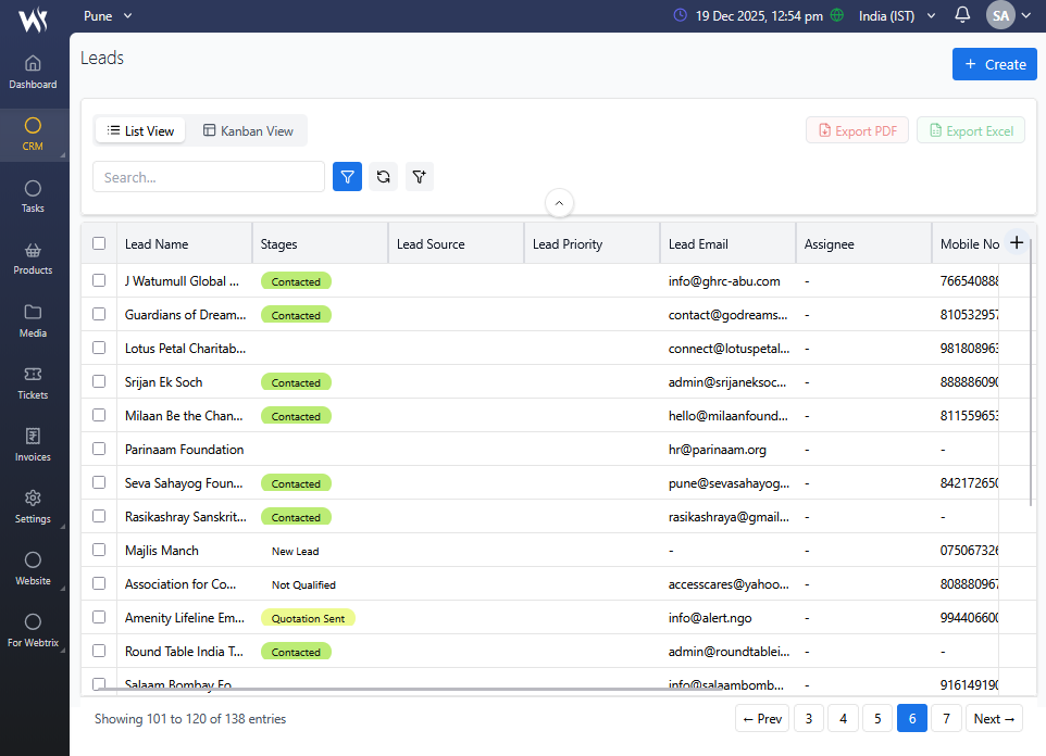 View and mange a complete list of leads with all essential details in one place for better tracking and decision-making.