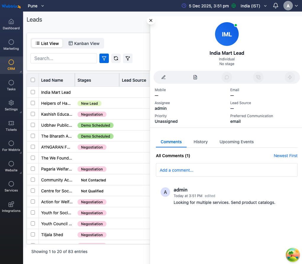 Unlike generic CRMs, Webtrix24 is tailored for Indian business needs — combining lead management, billing, tasks, WhatsApp integration, and analytics in one platform. It’s affordable, customizable, and designed to help you focus on business growth instead of manual work.